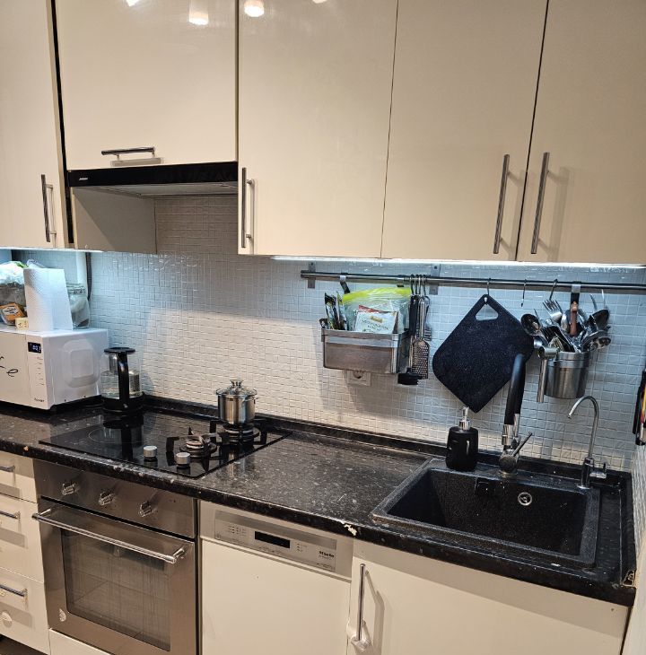 Из техники телевизор 70 диагональ samsung, вытяжка кухонная, стиральная машина с сушкой samsung, холодильник samsung, посудомоечная Miele, духовка ikea, панель варочная индукция +газ Electrolux , кондиционер.