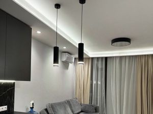 Апартаменты укомплектованы всей необходимой для проживания мебелью и техникой: холодильник (встроенный), стиральная машина, духовой шкаф, микроволновая печь, варочная панель, посудомоечная машина, телевизор. В кухне-гостиной и санузле теплый пол. Кондиционер в гостиной.