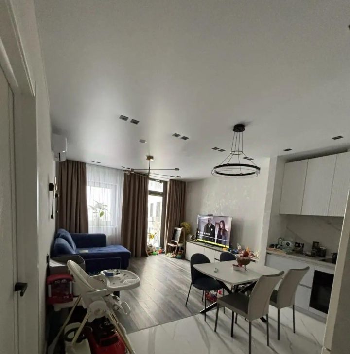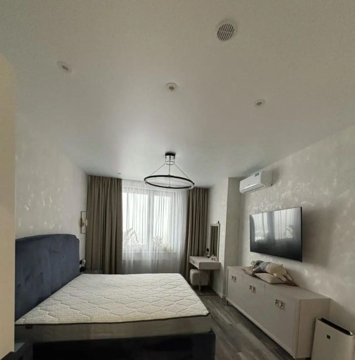 В квартире есть все необходимое для жизни: современная мебель на кухне и в комнате, кондиционер, холодильник, посудомоечная машина, телевизор и стиральная машина. Планировка предусматривает совмещенный санузел с ванной. Окна выходят на улицу, поэтому в квартире всегда светло и уютно.