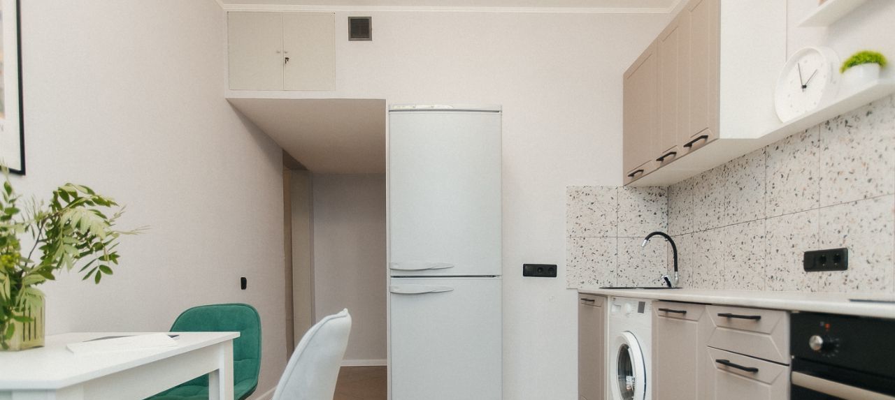 В квартире есть вся необходимая техника (холодильник, посудомоечная машина, кондиционер, стиральная машина) и мебель (двуспальная кровать, угловой диван, кухонный гарнитур, много шкафов). Санузел раздельный, комнаты изолированные.