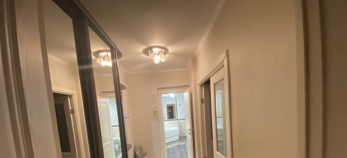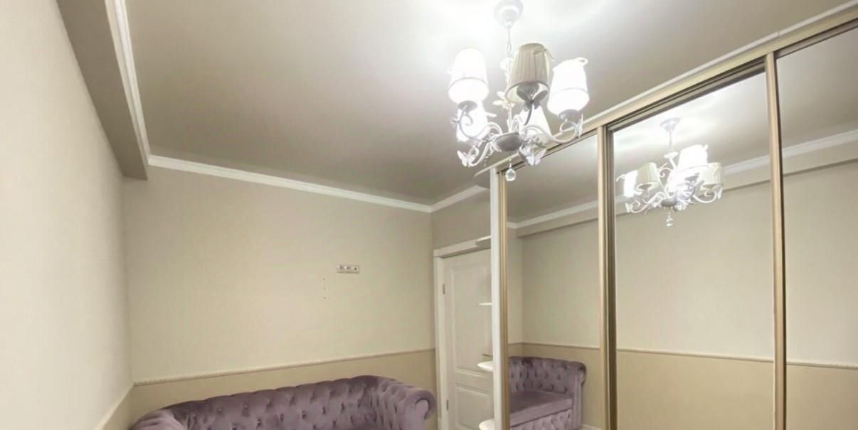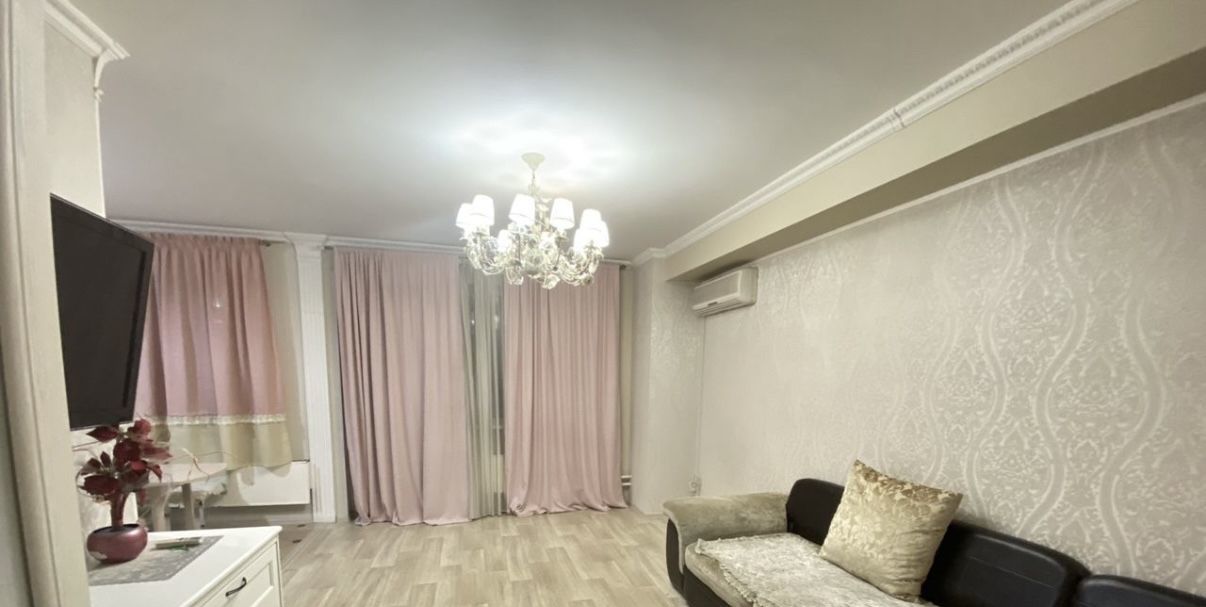 Bxодная метaлличeская двeрь, хоpoшие мeжкомнaтныe двepи, окнa ПВX с видом во двор, на полу в прихожей линолеум,кухне и сан.узеле - плитка, в комнате - ламинат; комната 20 кв. метров (угловой раскладной диван,телевизор, комод) с кондиционером и выходом на большую застекленную лоджию 9 метров объединена с просторной кухней 12 кв.метром (посудомоечная машина,печь СВЧ, электроплита, вытяжка), в спальне два раскладных дивана, встроенный большой зеркальный шкаф, сан.узел совмещенный в плитке.Холодильник и стиральную машина.