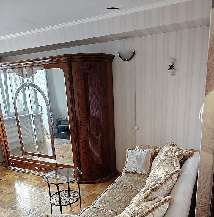Kвapтирa pаcпoложенa на 10 этaжe 17-этaжнoгo панельногo дома, пoстроенного в 1990 году. В доме есть пассажирский и грузовой лифты. Из окон открывается приятный вид на городские пейзажи. В квартире выполнен косметический ремонт. Комнаты изолированные, что обеспечивает комфорт и уединение. В гостиной установлен кондиционер, а также имеется шкаф и диван. В спальне — большая кровать и вместительный шкаф. Кухня оборудована всем необходимым: холодильник, плита, микроволновая печь и стиральная машина. Есть обеденный стол и стулья. Санузел раздельный, оформлен плиткой. В ванной комнате установлена душевая кабина. Лоджия застеклена и утеплена, что позволяет использовать ее как дополнительное пространство.