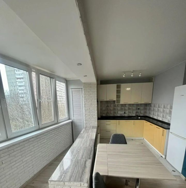 Изолированная спальня и просторная гостиная, объединенная с кухней с захватом лоджии, что создает ощущение дополнительного пространства и света.