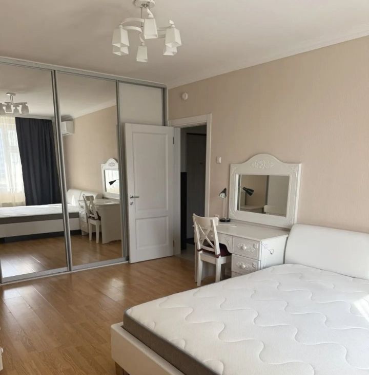 Встроенные шкафы вдоль стены очень вместительные, что позволит разместить большое количество одежды и других личных вещей.
