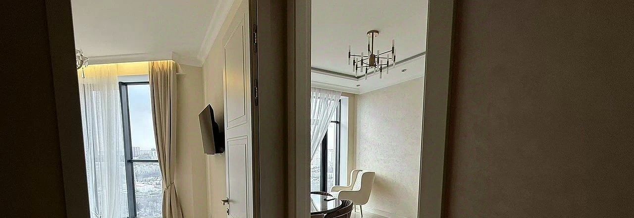 Панорамные окна в пол с французскими балконами открывают живописный вид на природный заказник Долина реки Сетунь. Шикарные входные группы, просторные лобби с консьерж сервисом и зоной ожидания. На территории комплекса выполнен роскошный ландшафтный дизайн, а также оборудованы спортивные и детские площадки и места для отдыха.