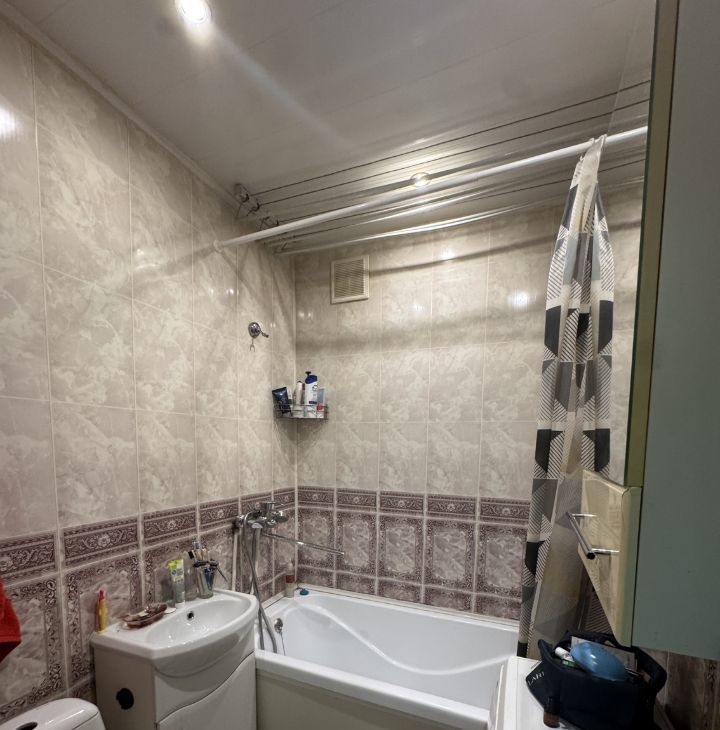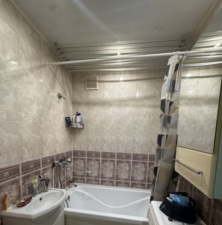 Санузел совмещенный, оборудован ванной и стиральной машиной. В квартире разрешено курение, можно проживать с детьми, БЕЗ ЖИВОТНЫХ .