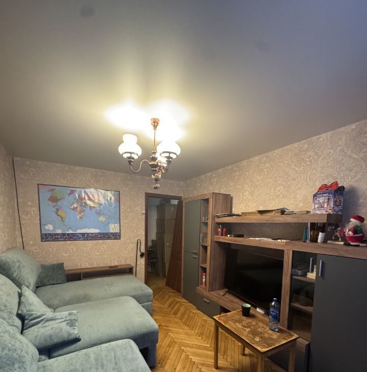 Кухня площадью 6 м² оснащена необходимой бытовой техникой, включая холодильник и микроволновую печь. В гостиной установлен телевизор и удобный диван, а также шкафы для хранения вещей. Из мебели в спальне — кровать , диван .