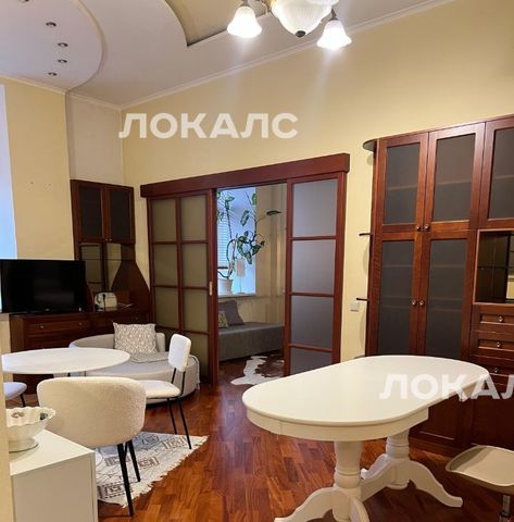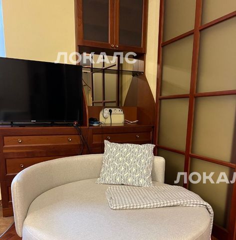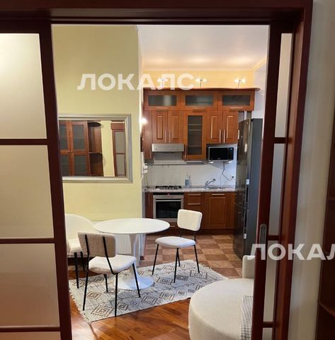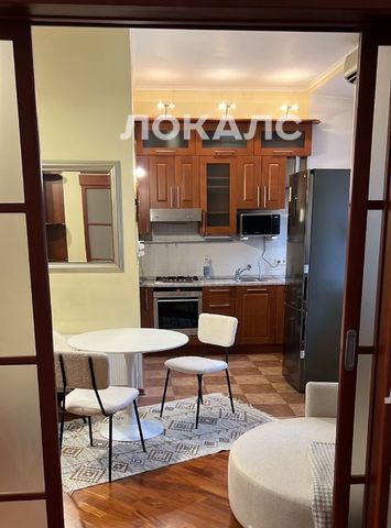 Планировочное решение: спальня -20 кв.м., гостиная-15 кв.м., и кухонная зона 6 кв.м. Совмещенный санузел. Дорогой ремонт, ПВХ, паркет, плитка. Имп. дорогая сантехника. Теплые полы на кухне и в санузле. Дорогая мебель. Встр. шкафы-купе. Встр. быт. техника, вкл. ПММ и кондиционер. Интернет. Окна в тихий Калашный переулок. Великолепное красивейшее место. В доме рестораны, кафе, салоны. Напротив зеленый сквер. Квартира сдается на