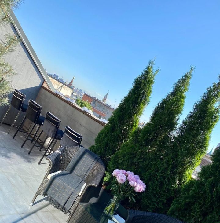 В аренду предлагается двухуровневый пентхаус с панорамной террасой. Дизайнерский ремонт. На первом этаже размещены кухня со столовой зоной, гостиная, гостевой санузел и гардероб. На втором уровне спальня с ванной комнатной и гардеробной, а так же потрясающая терраса (20м2) в сторону Кремля. Окна апартамента выходят на две стороны. Машиноместо на подземном паркинге входит в стоимость.