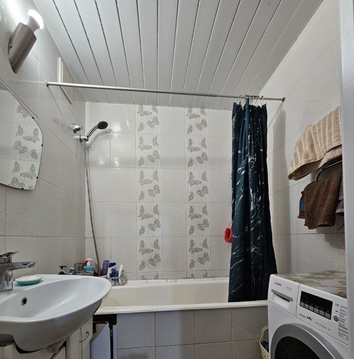 В квартире сделан косметический ремонт. Имеется вся необходимая мебель как в комнатах, так и на кухне. К вашим услугам холодильник, телевизор и стиральная машина. Планировка включает одну лоджию и отдельный санузел с ванной. Также в доме есть мусоропровод, поэтому можно легко избавиться от бытовых отходов.
