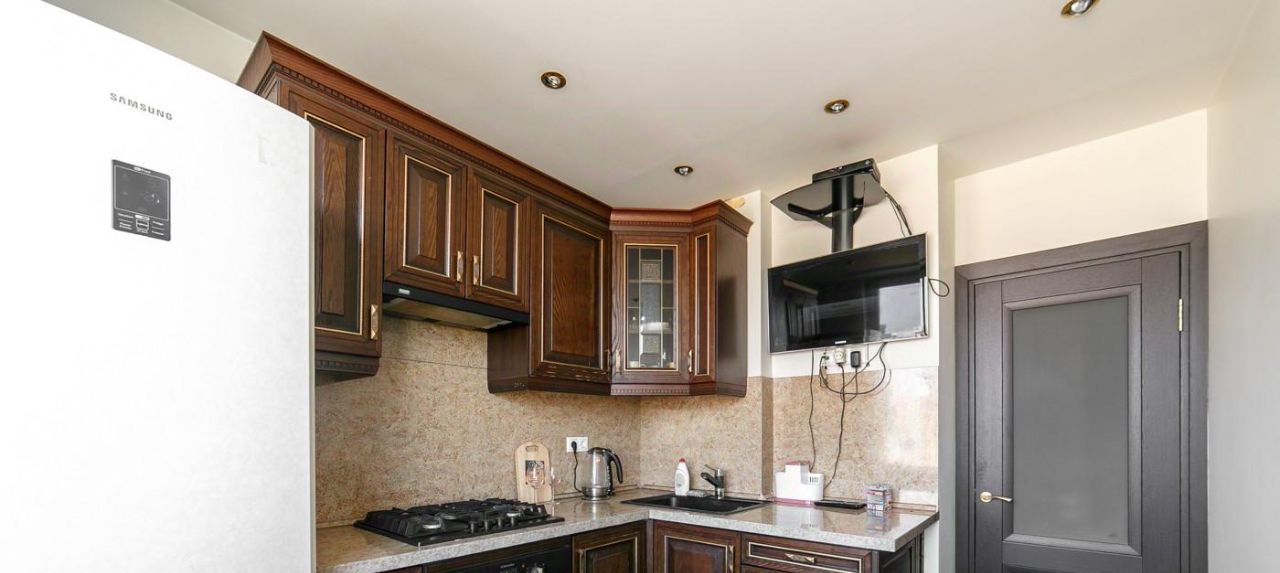 С хорошим ремонтом и дорогой мебелью. Квартира, с очень просторной спальной комнатой - 24 метра!