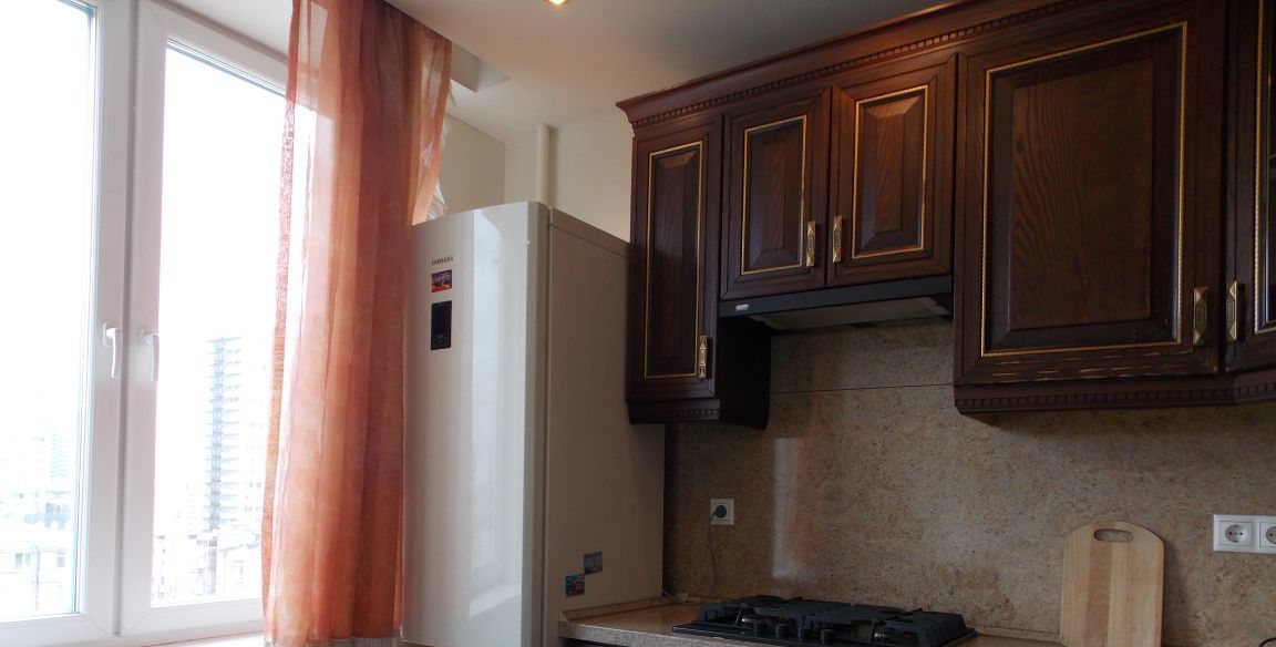С хорошим ремонтом и дорогой мебелью. Квартира, с очень просторной спальной комнатой - 24 метра!