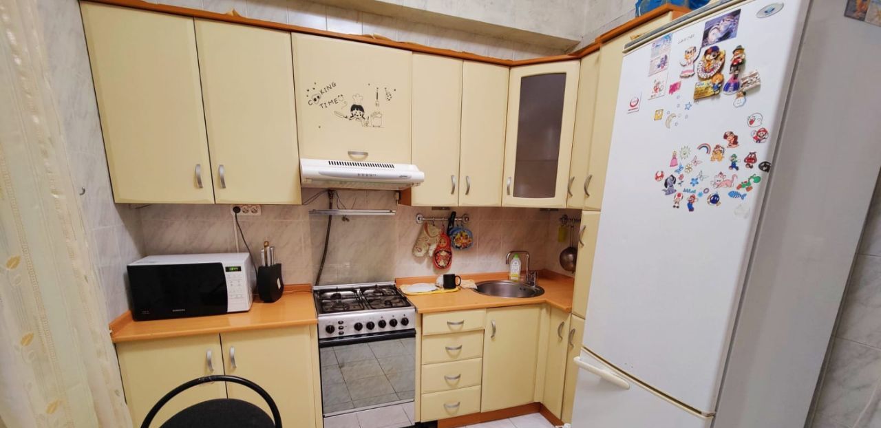 В квартире есть всё необходимое для комфортного проживания. Сделан косметический ремонт. В комнате и на кухне есть мебель, что позволит вам сразу заселиться. Из техники в вашем распоряжении кондиционер, холодильник, стиральная машина и телевизор. Санузел совмещённый, оборудован ванной.