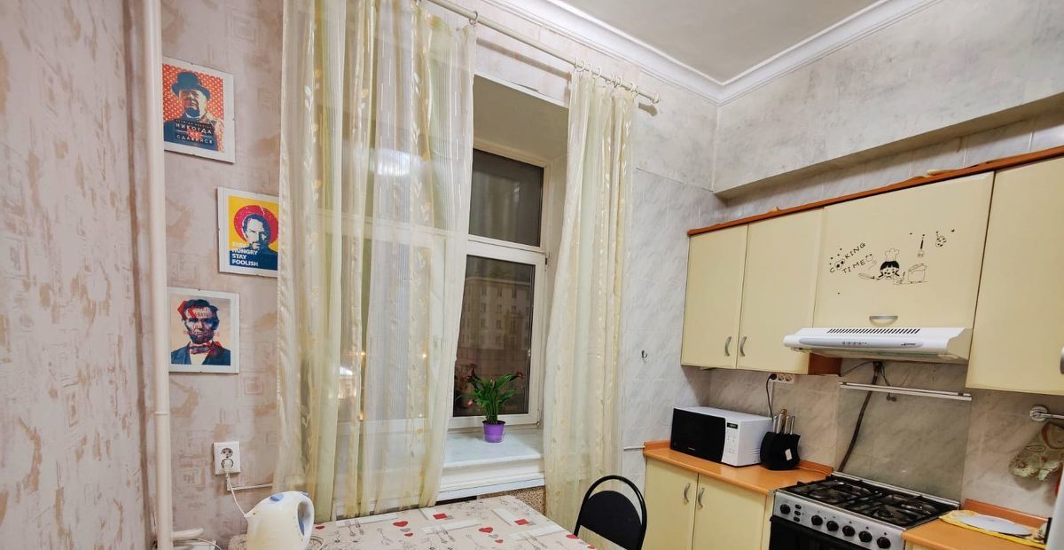 Сдаётся просторная двухкомнатная квартира в кирпичном доме рядом с метро "Смоленская". Общая площадь квартиры составляет 66 кв. м, жилая площадь — 39 кв. м, кухня — 9 кв. м. Квартира расположена на 5-м этаже 10-этажного дома. Высокие потолки (3.2 метра) добавляют ощущение простора.