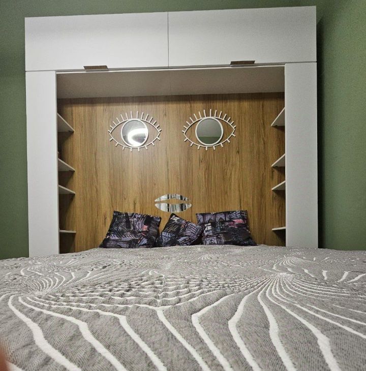 В жилых комнатах — двуспальная кровать и односпальная кровати. Санузел совмещенный.