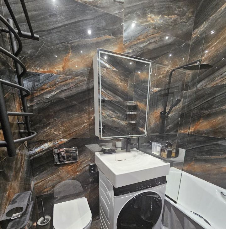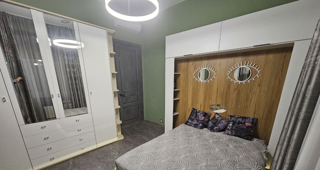 Общая площадь — 42,6 м², жилая - 26м2, кухня - 13м2. В квартире дизайнерский ремонт, мебель и техника в хорошем рабочем состоянии. Из техники: кондиционер, холодильник, плита, микроволновка, стиральная машина, посудомоечная машина, телевизор.
