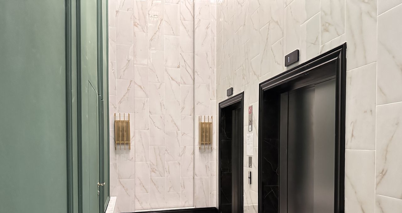 Здание находится под охраной и видеонаблюдением, работают пассажирский и грузовой лифты, консьерж-сервис, имеется подземный паркинг. Двор без машин, есть детские площадки, места для прогулок и отдыха.