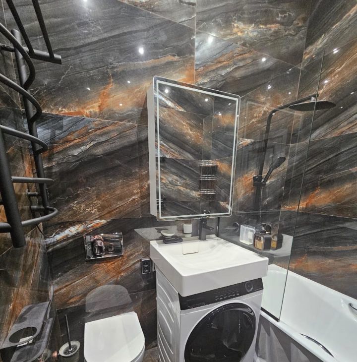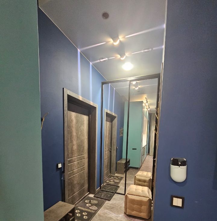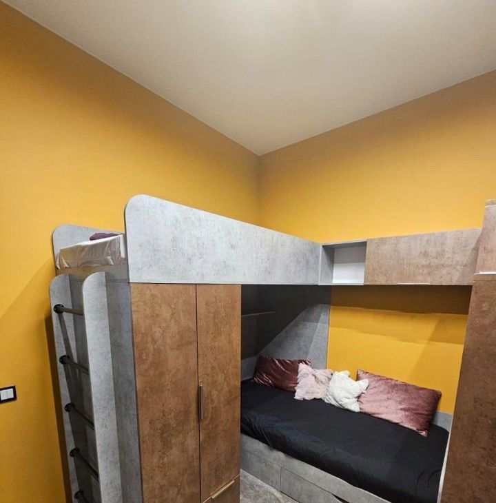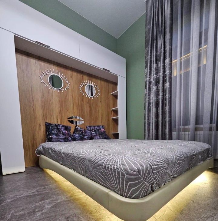 Дизайнерская квартира для ценителей комфорта: кухня-гостиная + 2 спальни (1. двуспальная кровать; 2. две односпальные кровати+2 рабочих места).