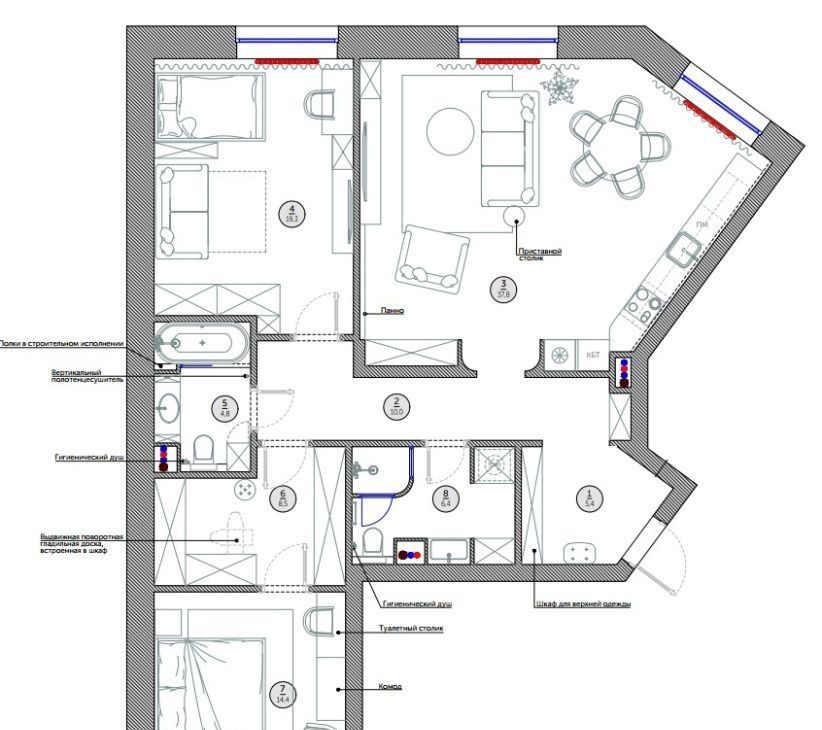 Планировка включает: