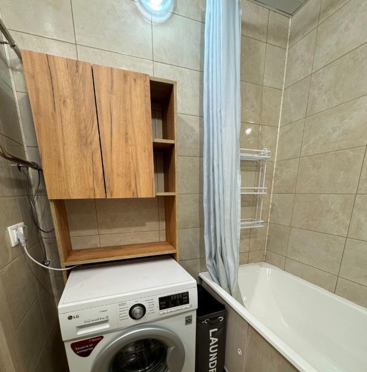 В квартире есть всё необходимое для комфортного проживания: современная мебель как на кухне, так и в комнате, полный комплект техники, включая холодильник, посудомоечную и стиральную машины, а также телевизор. Санузел раздельный, с ванной. Один балкон, где можно отдохнуть и насладиться видом.