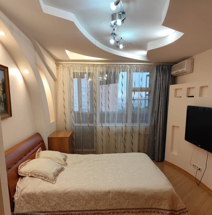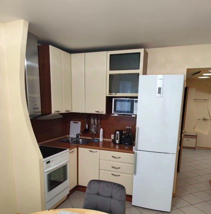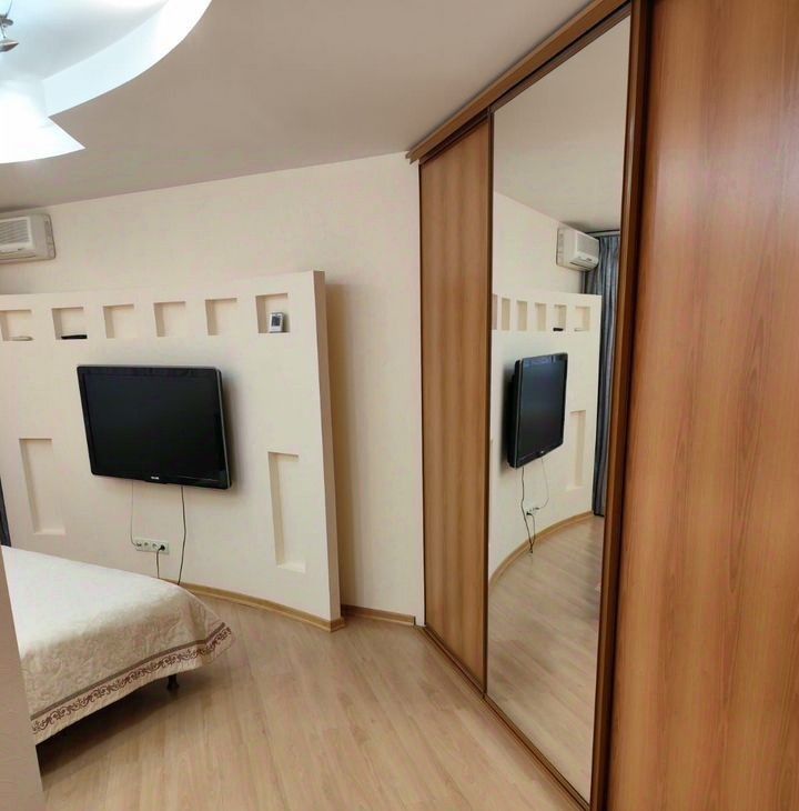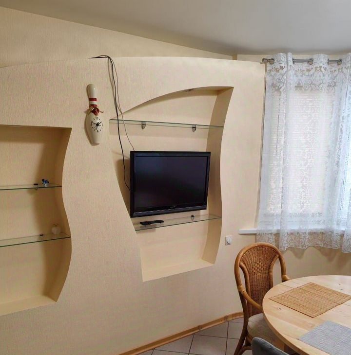 Квартира выполнена в современном стиле с качественной отделкой. В комнате и на кухне есть вся необходимая мебель, поэтому можно сразу заехать и жить. Кухня оборудована современной техникой: кондиционером, холодильником, телевизором и стиральной машиной. Ванная комната оснащена ванной, что особенно приятно после долгого рабочего дня.
