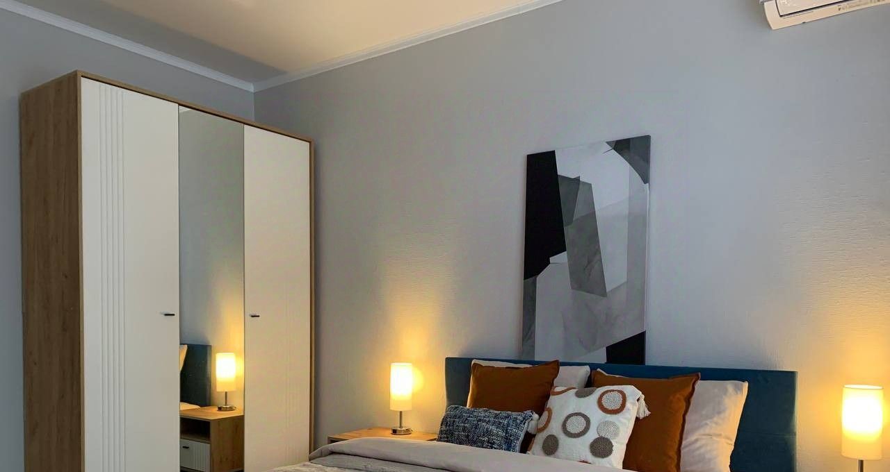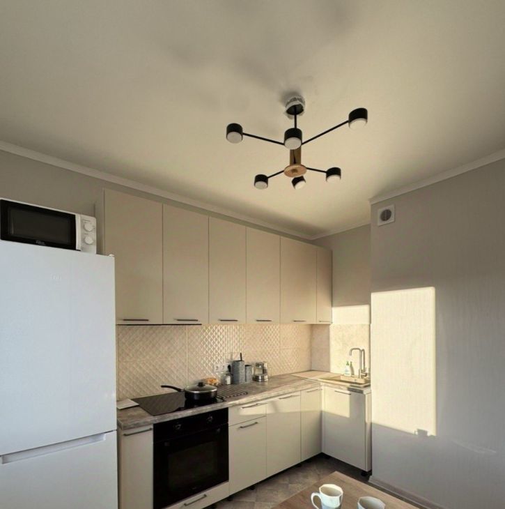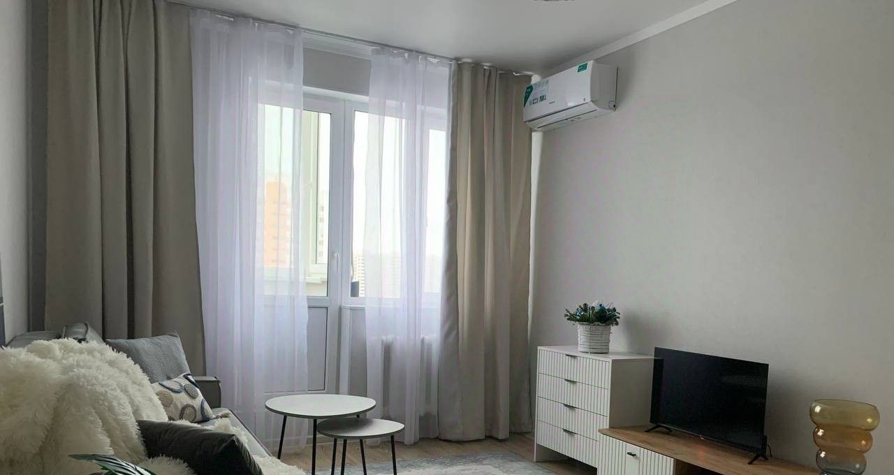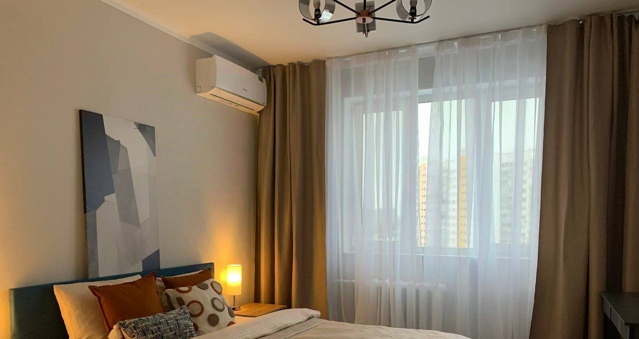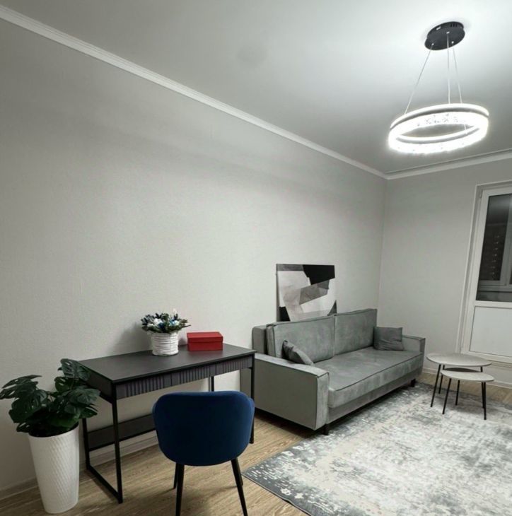 В квартире выполнен евроремонт, что делает её светлой и современной. К вашим услугам вся необходимая техника: кондиционер, холодильник, телевизор, посудомоечная и стиральная машины. На кухне и в комнате есть мебель, так что можно сразу переезжать и наслаждаться комфортом. Ванная комната оборудована ванной, а из окон открывается панорама на район. Есть застекленный балкон, где можно приятно провести вечер.