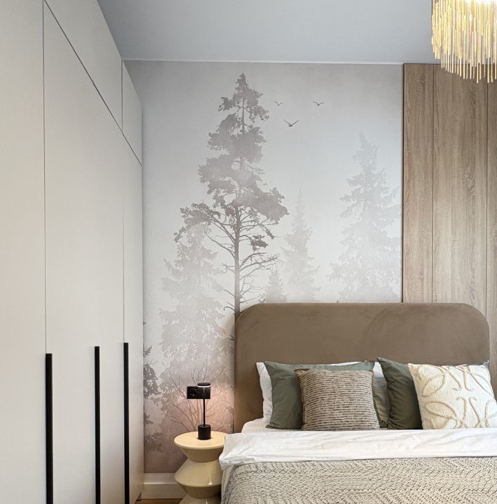 Спальня с широкой кроватью и ортопедическим матрасом, вместительный шкаф.