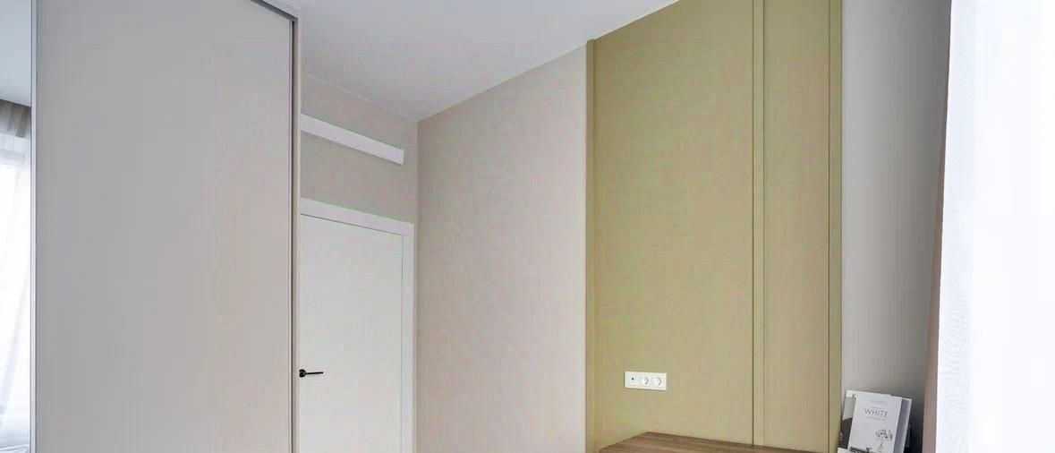 - Спальня: полноценная двуспальная кровать, рабочее место, большой шкаф-купе.