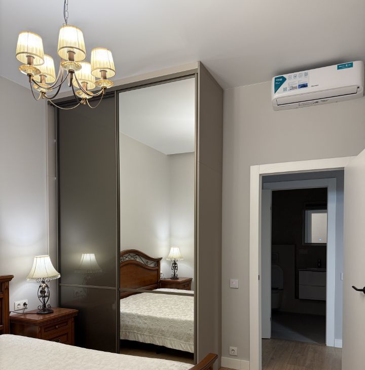 В квартире есть все необходимое для комфортного проживания: кондиционер, холодильник, телевизор, посудомоечная машина, электрическая плита и духовой шкаф, посуда.