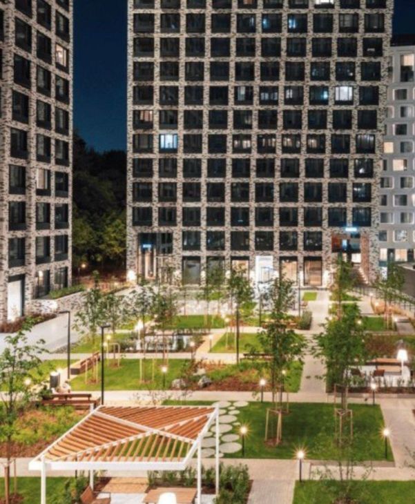 В ЖК закрытая красивая территория с зонами отдыха, столами для работы, консьерж сервис, круглосуточная охрана, видеонаблюдение, отдельные комнаты для велосипедов и колясок, стильное лобби с диванчиками и каминами, есть подземный паркинг.