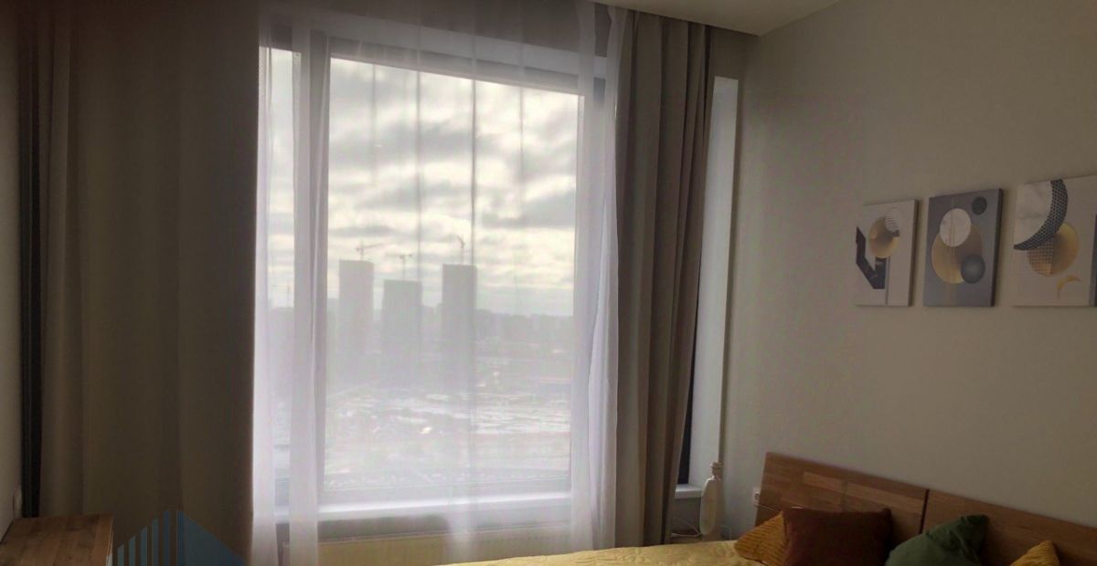 В квартире выполнен качественный ремонт в светлых и пастельных тонах. Функциональная планировка: просторная кухня-13.3 кв м, две изолированные комнаты: гостиная-21.5 кв м, спальня-10.6 кв м, два санузла, гардеробная. Квартира полностью оснащена всей необходимой мебелью и техникой для комфортного проживания: посудомоечная машина, стиральная машина, холодильник, духовой шкаф, плита, кондиционер, интернет-WIFI. Панорамные окна. Высокие потолки.