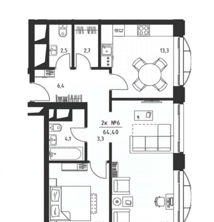2-к кв. Москва Новоданиловская наб., 8к3 (64.0 м²)