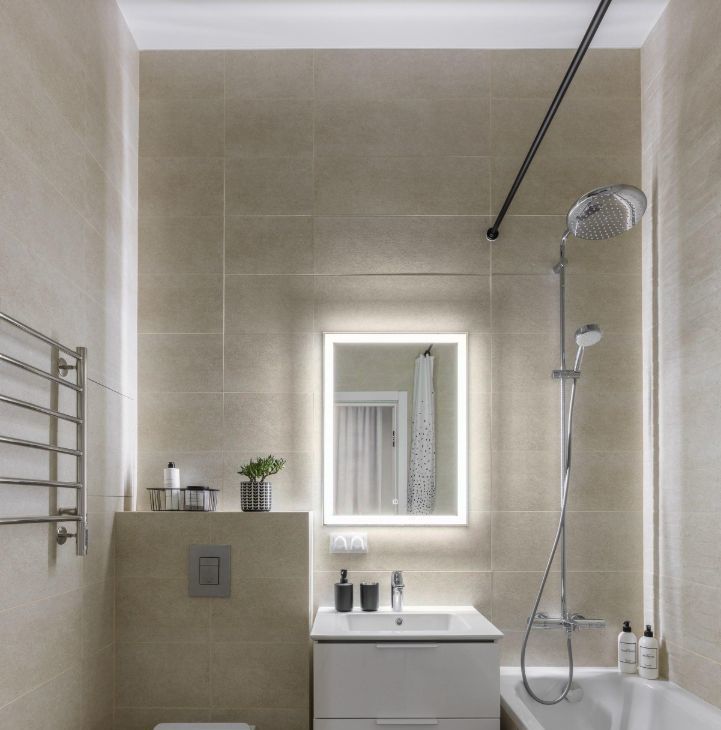Потолки 3.3 метра (такие начинаются только с 19 этажа). За счет этого и больших окон в квартире очень много объема и света.