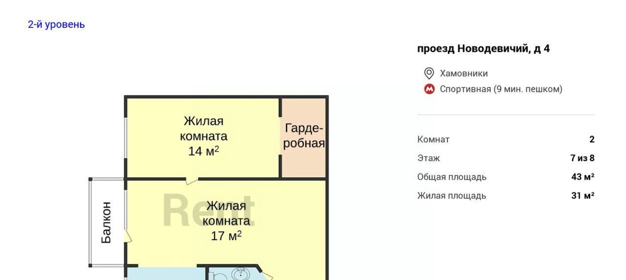 2-к кв. Москва Новодевичий проезд, 4 (43.0 м²)