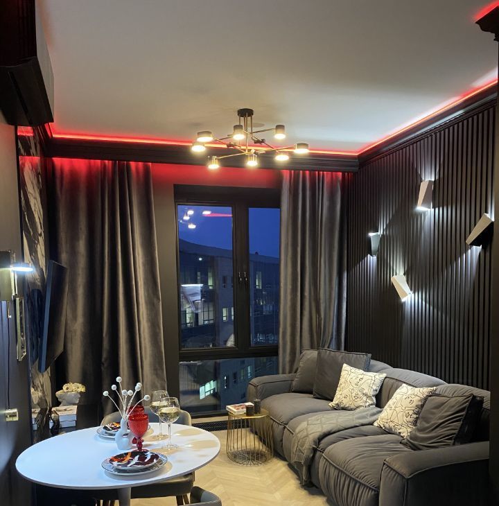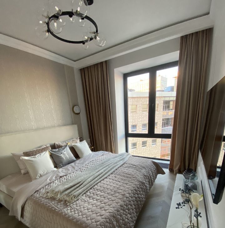 Жк Бизнесс класса . Проект напечатали в журнале ДОМ и ИНТЕРЬЕР . Потрясающая квартира с дизайнерским премиальным ремонтом оформленная декоратором, посуда, текстиль подобраны под интерьер, есть все для жизни, полный комплект столовых приборов, посуды различные лопатки, кастрюля, сковородки, 80% посуды новая, тостер и чайник Smag, полотенца, одеяло, новые подушки Togas и матрас. Для вашего удобства 3 встроенный шкафа под потолок ( коридор, с/у, спальня. ) Имеется разные сценарии освещения, подсветка потолочная в каждой комнате, меняется по пульту на любой цвет, светомузыка, бра в спальне из натурального мрамора, USB розетки в каждой комнате, унитаз Villeroy & Boch , плитка знаменитой итальянской фирмы Fornasetti, использованы дорогие материалы квартира продумана до мелочей делалась для себя не под сдачу. Для развлечения 2 телевизора Смарт тв диагональю 50 см . Пылесос и отпариватель . Развитая инфраструктура,в комплексе большое количество ресторанов и кафе на любой вкус, а так же спорт зал и магазины одежды, в самом доме алкогольный магазин, спа салон, маникюр и wb.
