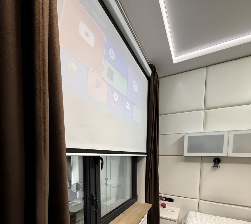 Квартира полностью оснащена всем для комфортного проживания ( вся мебель и встроенная техника). Спальня оснащена большим экраном с электроприводом и проектором для уютного просмотра фильмов и тп.