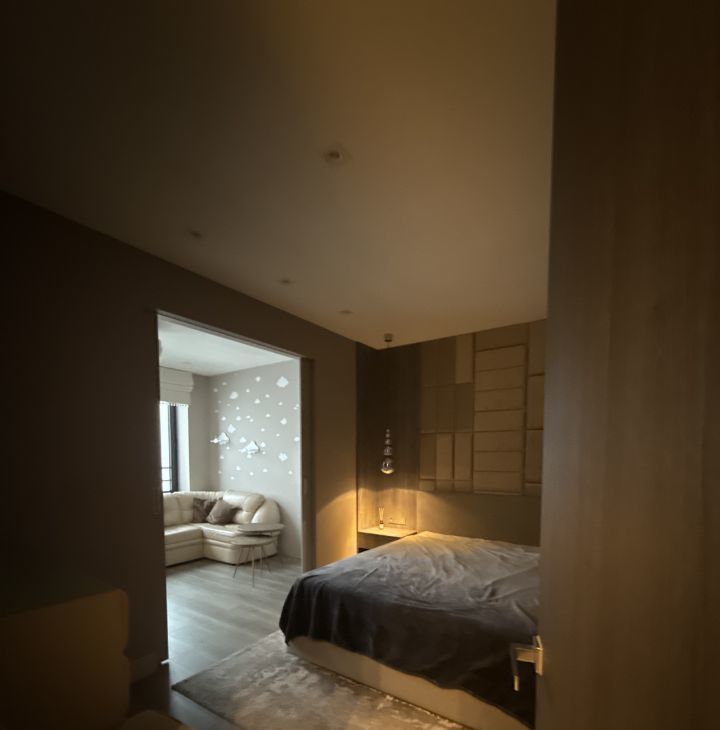 - спальная комната закрывается перегородкой: есть возможность отгородиться от другой части комнаты, где можно обустроить детскую или кабинет.