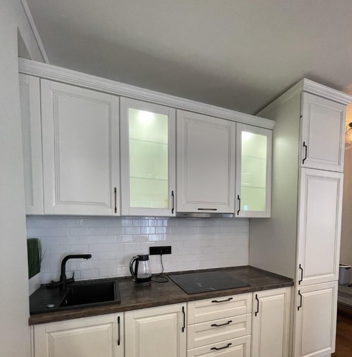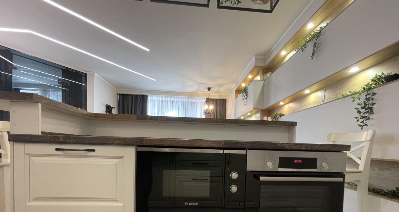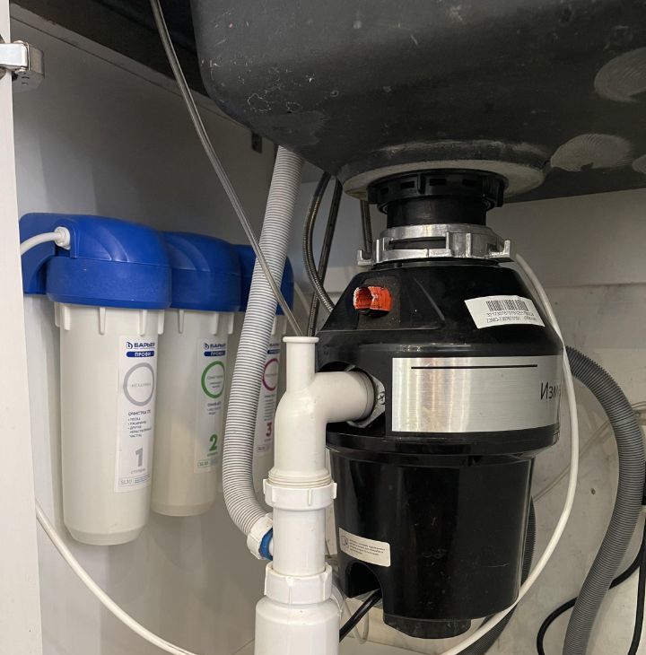 Кухня с островом полностью оборудована для комфортной жизни, СВЧ, духовой шкаф, посудомоечная машина. Установлены фильтры для питьевой воды, измельчитель пищевых отходов.