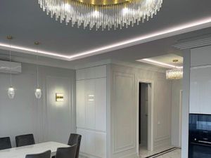 Кухня сделана из натурального дерева немецкой фирмы Leicht, остров, фартук и подоконники натуральный итальянский камень, межкомнатные двери Union, вся сантехника Villeroy & Boch, на полу дубовый паркет, входная дверь бронируемая, видео наблюдение, кондиционеры, посудомоечная машина, стиральная и сушильные машины, теплые полы , датчики протечки, интернет и тд.