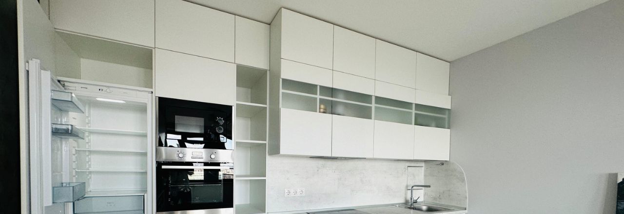 Светлая и полностью меблированная евродвушка для длительной аренды. Вся необходимая техника: холодильник, духовой шкаф, посудомоечная и стиральная машины, микроволновка, кондиционер. Wi-Fi.