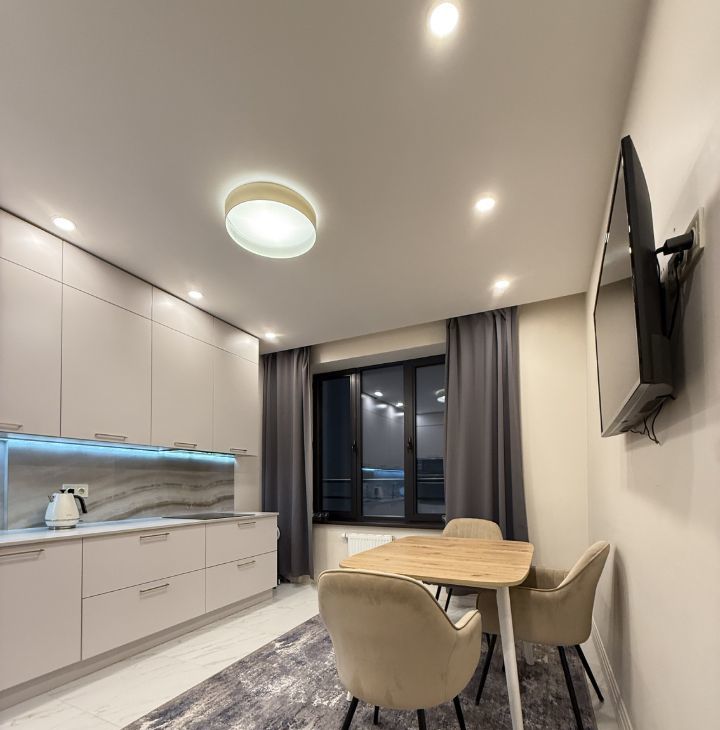 Квартира полностью меблирована и оборудована современной мебелью и техникой.