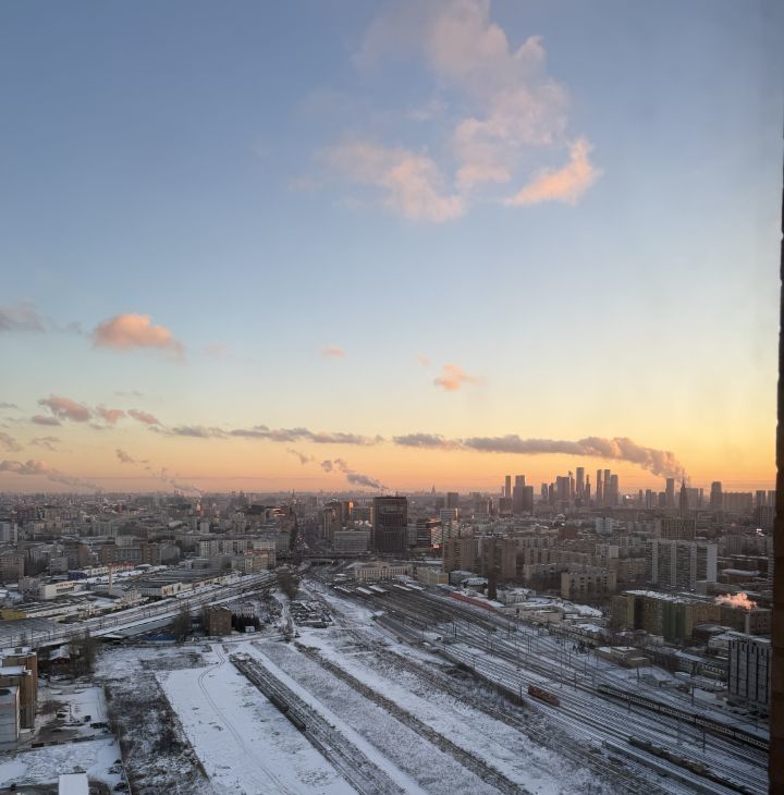 Высокий 34 этаж, с которого открывается шикарный панорамный вид на центр Москвы: Дом на Котельнической набережной, Кремль, Храм Христа спасителя, дома книжки на арбате, Москва сити, МИД, Лужники, МГУ. (Видно 10-12 точек салютов со всей Москвы).