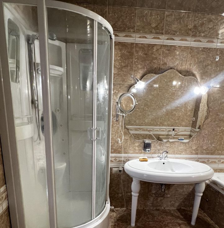 В квартире выполнен качественный дизайнерский ремонт, который создаёт атмосферу уюта и комфорта. В наличии вся необходимая техника: кондиционер, холодильник, посудомоечная и стиральная машины, а также телевизор. В ванной комнате есть как ванна, так и душевая кабина, что позволяет выбирать между быстрым душем и расслабляющей ванной.