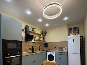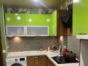 В квартире есть все необходимое для жизни: кухня, стол, стулья, диван, тумба, письменный стол, кровать, большой шкаф-купэ, бытовая техника - духовка, холодильник, плита, тв.