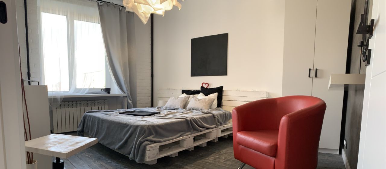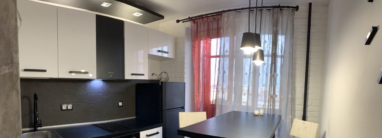 Сдается в аренду на длительный срок в стиле индастриал Loft уютная, 2-х комнатная квартира на верхнем этаже жилого дома. Дизайн жилья выдержан в стиле industrial лофт в черном - белом - красном цвете с дополнительной кирпичной кладкой некоторых стеновых покрытий. Все окна помещения с новыми стеклопакетами и широкими подоконниками. Напольное покрытие жилой зоны из нового натурального массива и напольной керамической плитки. Белые французские подвесные потолки. Окна выходят на восток и юг. Зимой квартира теплая, летом не жаркая. БЕЗ кондиционера.