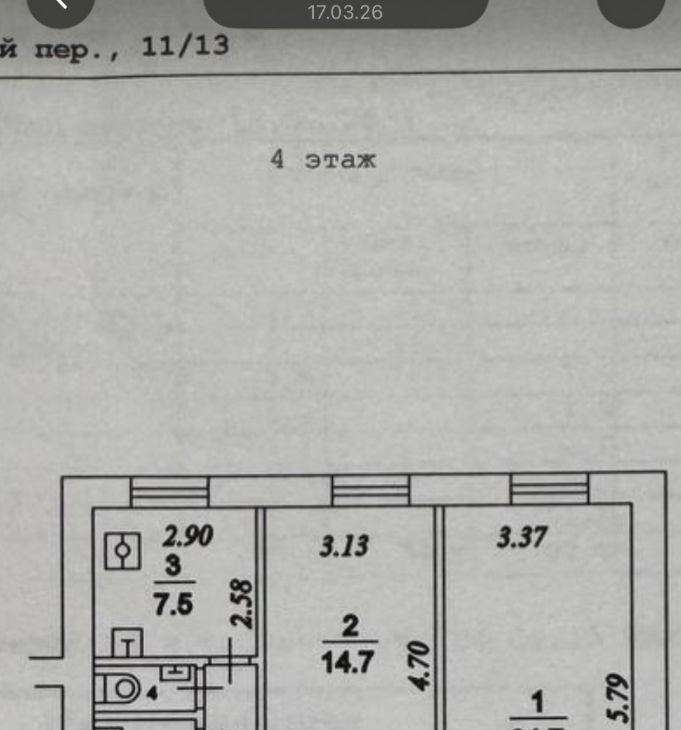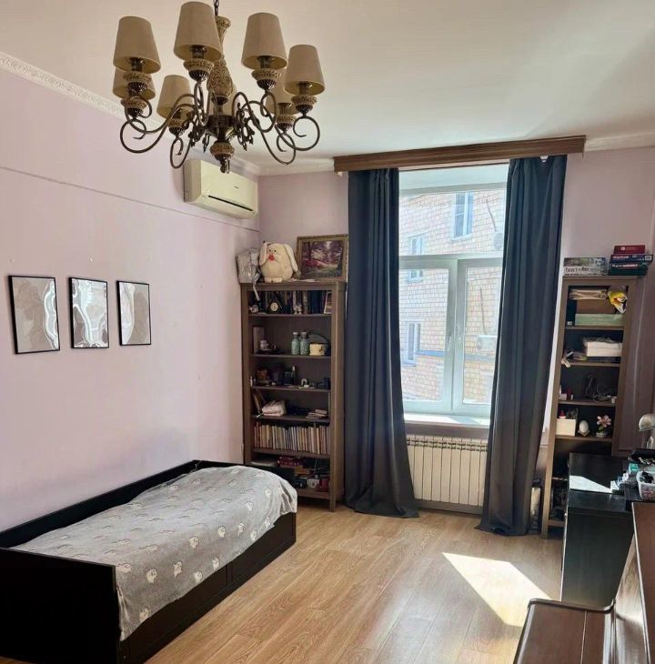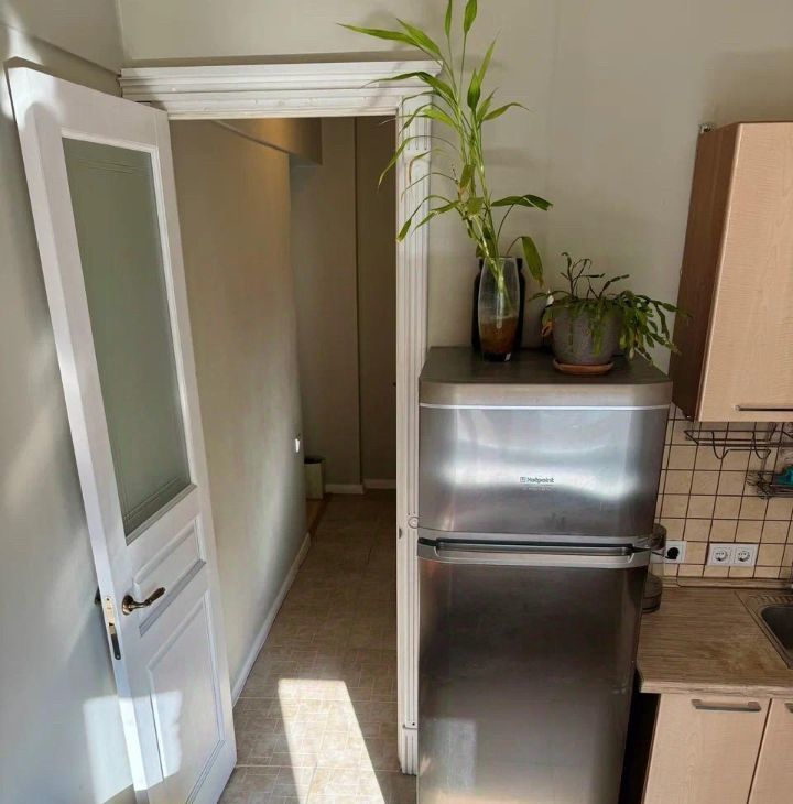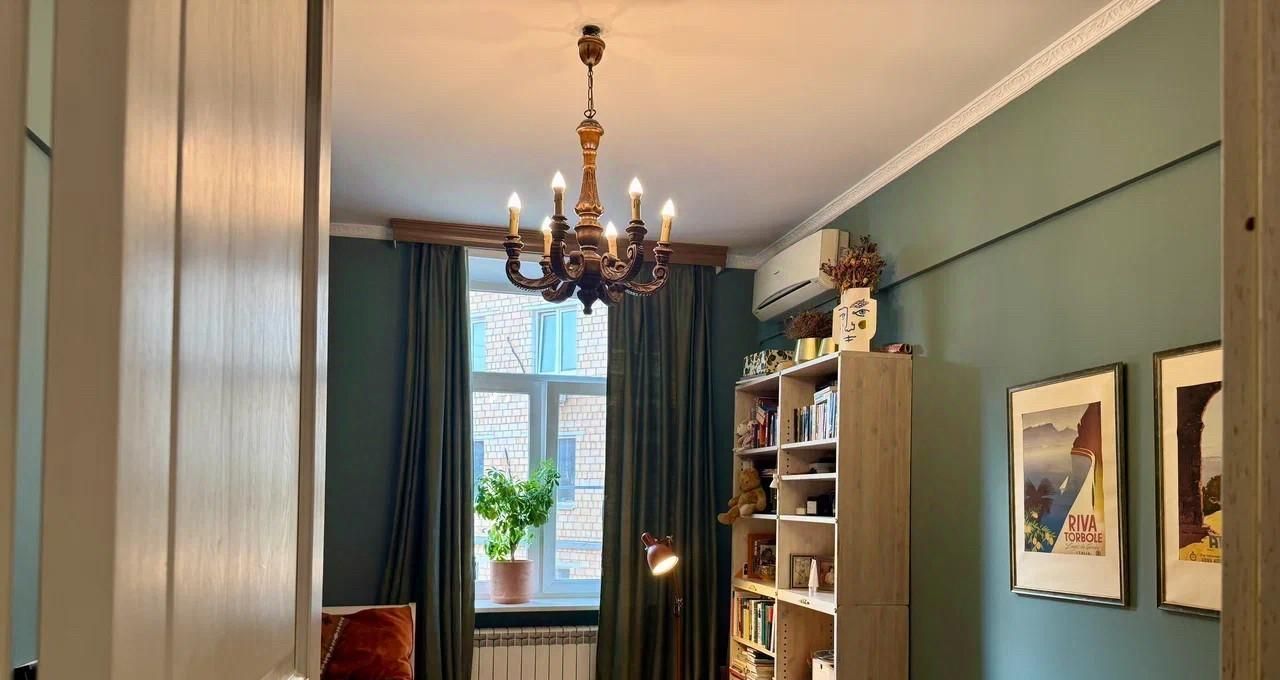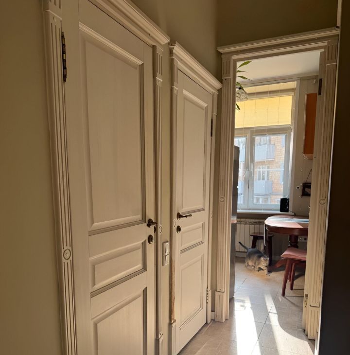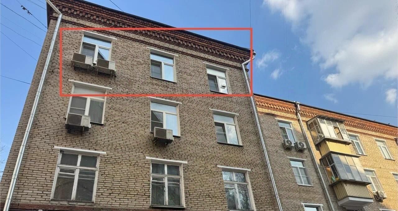 Квартира расположена на 4 этаже 4-этажного кирпичного дома 1956 года постройки. Дом с железобетонными перекрытиями, толстыми наружными стенами (60 см) и высокими потолками —3 метра.