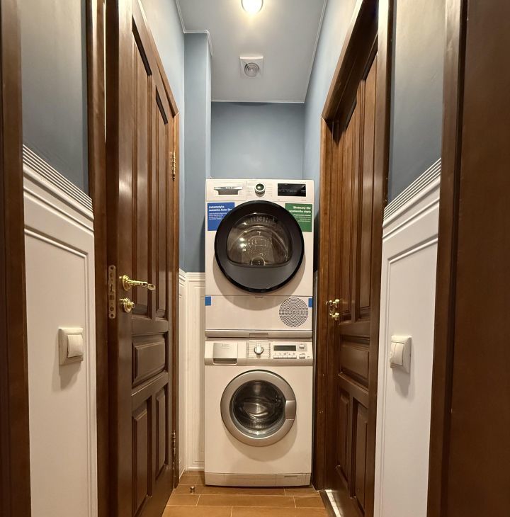 Два раздельных санузла и прачечная (стиральная машина AEG и сушильная машина Bosch). Система умный дом.