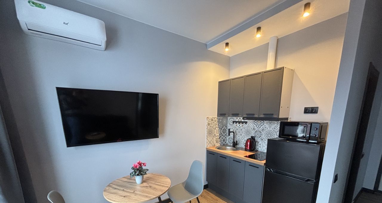 Уникальная евродвушка для проживания одного человека или молодой пары, которая оснащена всей необходимой техникой и мебелью. Планировка квартиры продумана до мелочей. Хороший панорамный вид из окон.