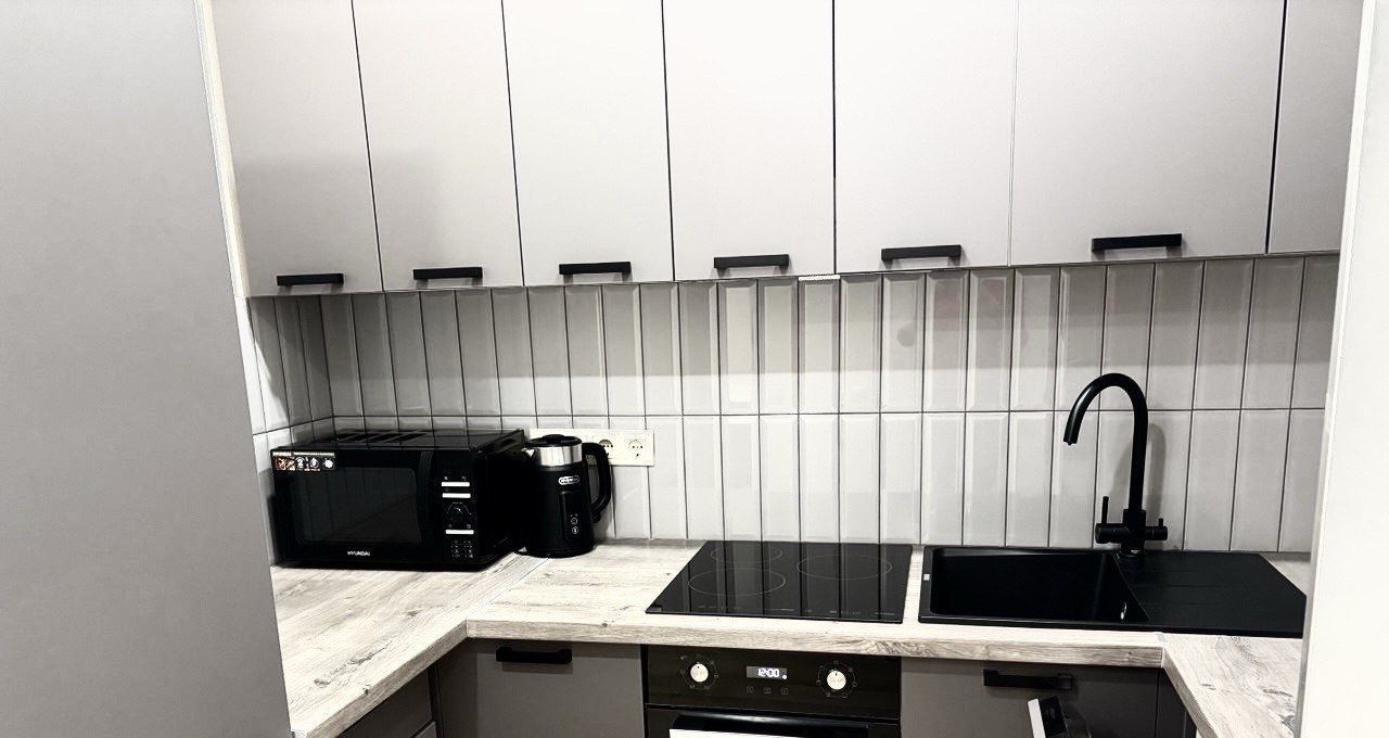Выполнен качественный дизайнерский ремонт, теплые полы, встроенные в пол радиаторы, шумоизоляция сверху, ТВ 55 дюймов, вся техника, включая посудомоечную машину, микроволновку, духовой шкаф, 3 комфорочную электроплиту, электрочайник (вся техника Hyundai). В спальне двуспальная кровать, в гостиной полноценный диван с 2 спальными местами.