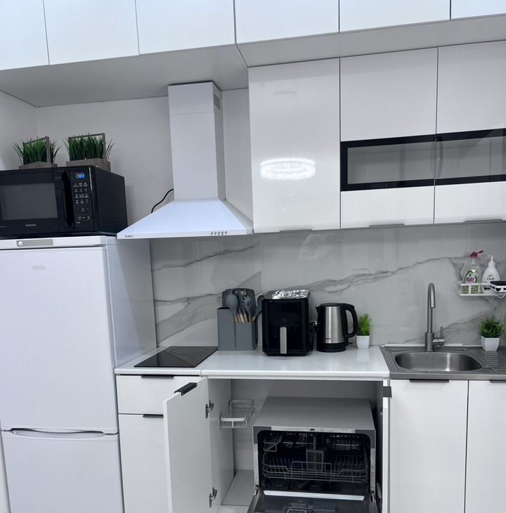 всё для комфортной жизни: удобная мебель, современная техника — холодильник, посудомоечная и стиральная машины, телевизор, кондиционер